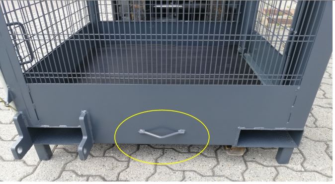 Su tre angoli del cestello sono stati posizionati dei robusti ganci per l’imbracatura. Sono stati posizionati ad altezza piedi per aumentare la sicurezza dell’operatore (imbracatura non fornita di serie).
